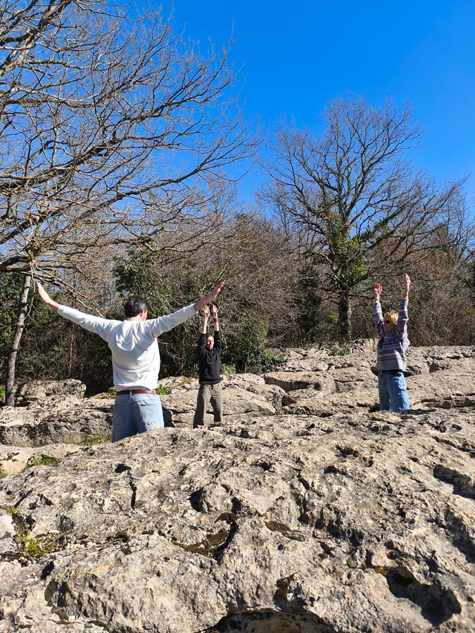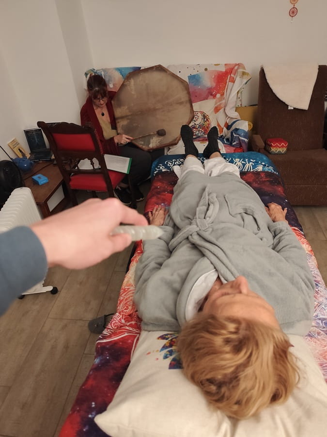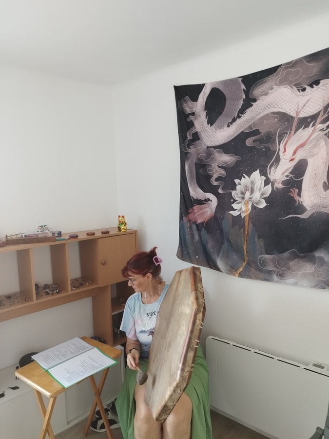 À travers des soins en direct, adaptés à ce que tu vis sur l’instant, à travers des pratiques comme le qi gong chamanique atlante, pour remettre du mouvement là où tout est figé.